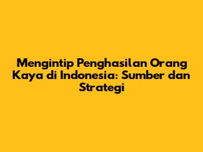 Mengintip Penghasilan Orang Kaya Di Indonesia: Sumber Dan Strategi