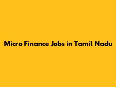 Micro Finance Jobs In Tamil Nadu: Find Opportunities