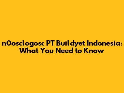 N0osclogosc PT Buildyet Indonesia: What You Need To Know