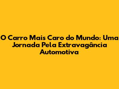 O Carro Mais Caro Do Mundo: Uma Jornada Pela Extravagância Automotiva