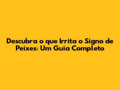 Ei, pessoal! Já se perguntaram o que realmente tira um pisciano do sério? Peixes, o último signo do zodíaco, é conhecido por sua natureza sensível, compassiva e sonhadora. Mas, como todos os signos, eles também têm seus limites e coisas que os irritam profundamente. Se você quer entender melhor os piscianos em sua vida ou simplesmente é um curioso do zodíaco, este guia é para você! Vamos mergulhar no mundo emocional de Peixes e descobrir o que os incomoda de verdade.