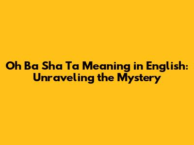 Oh Ba Sha Ta: Meaning And Origins Explained!