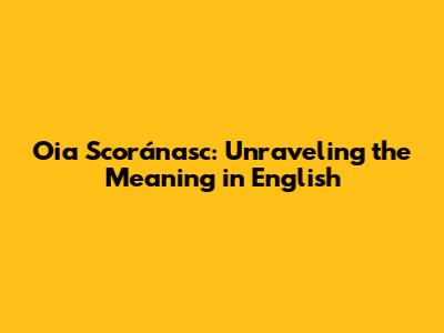 Oia Scoránasc: Unraveling The Meaning In English