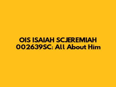 We hope this comprehensive overview has provided you with a solid foundation for understanding OIS ISAIAH SCJEREMIAH 002639SC. Keep exploring, and you might just uncover the full story behind this intriguing identifier!