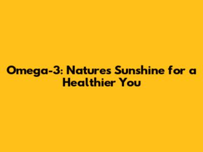 Omega-3: Nature's Sunshine For A Healthier You