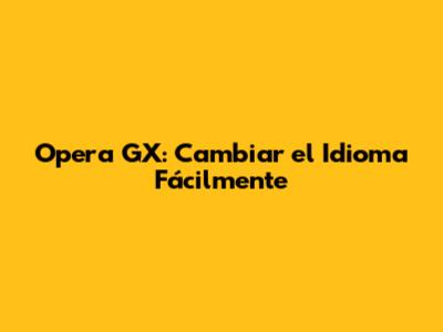 ¿Por Qué Cambiar el Idioma en Opera GX?