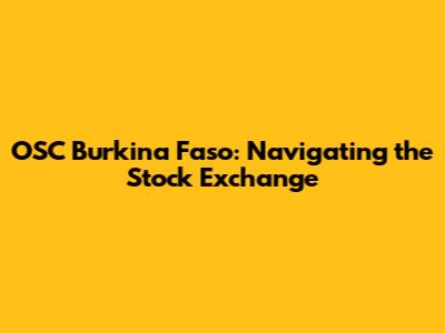 OSC Burkina Faso: Your Guide To The Stock Exchange
