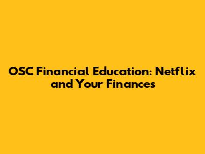 OSC Financial Education: Netflix And Your Finances