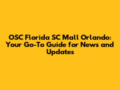 OSC Florida SC Mall Orlando News: Updates & More