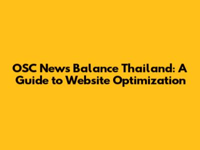 OSC News Balance Thailand: A Guide To Website Optimization