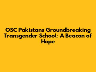 OSC Pakistan's Groundbreaking Transgender School: A Beacon Of Hope