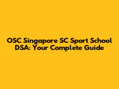 OSC Singapore & SC Sport School DSA: Your Guide