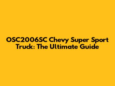 OSC2006SC Chevy Super Sport Truck: The Ultimate Guide