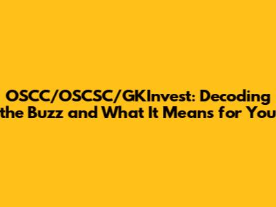 OSCC/OSCSC/GKInvest: Unveiling The Investment Landscape