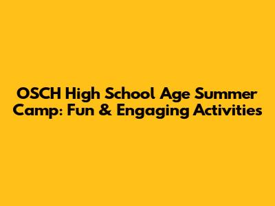 OSCH High School Age Summer Camp: Fun & Engaging Activities