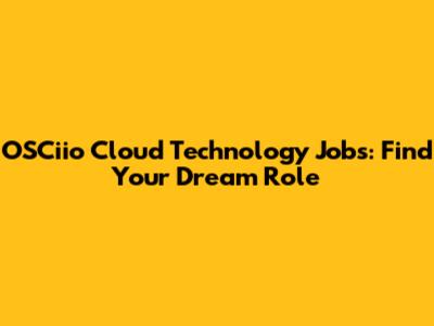 OSCiio Cloud Technology Jobs: Find Your Dream Role