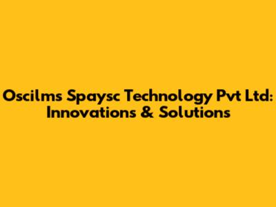 Oscilms Spaysc Technology Pvt Ltd: Innovations & Solutions