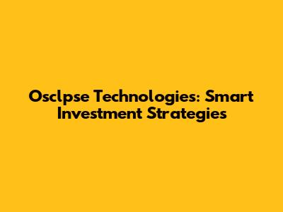 Osclpse Technologies: Smart Investment Strategies