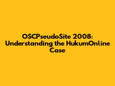 OSCPseudoSite 2008: Understanding The HukumOnline Case