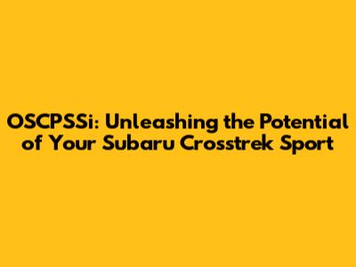 Hey car enthusiasts! Are you ready to dive deep into the world of OSCPSSi and discover how it can supercharge your Subaru Crosstrek Sport? Buckle up, because we're about to explore the ins and outs of this game-changing system and how it can elevate your driving experience to a whole new level. Let's get started!