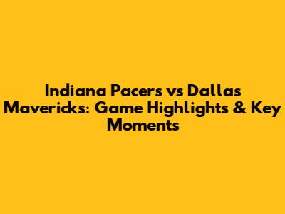 Pacers Vs Mavericks: Game Highlights & Key Moments