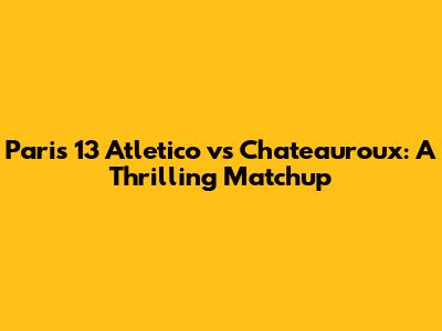 Get ready, football fans! We're diving deep into the exciting clash between Paris 13 Atletico and Chateauroux. This isn't just another game; it's a battle of strategies, skills, and sheer determination. Whether you're a die-hard supporter or just curious about French football, stick around as we break down everything you need to know about this thrilling matchup. From team form to key players, we’ve got you covered. Understanding the nuances of this game can significantly enhance your viewing experience. Let's explore the history, the stakes, and what makes this particular contest so compelling. So, buckle up and let’s get started!