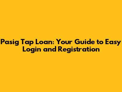 Pasig Tap Loan: Your Guide To Easy Login And Registration