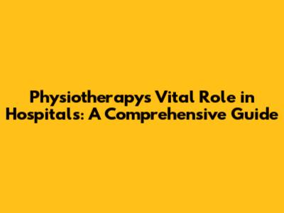 Physiotherapy's Vital Role In Hospitals: A Comprehensive Guide