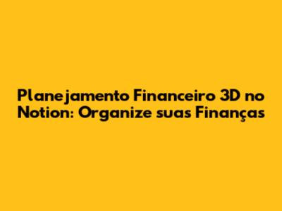 Planejamento Financeiro 3D No Notion: Organize Suas Finanças