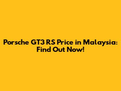 Porsche GT3 RS Price In Malaysia: Find Out Now!