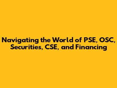 PSE, OSC, Securities, CSE, And Financing Guide