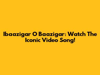Ibaazigar O Baazigar: Watch The Iconic Video Song!