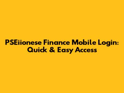 PSEiionese Finance Mobile Login: Quick & Easy Access