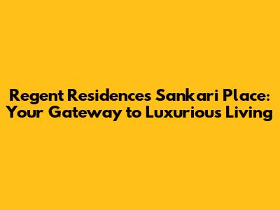 Regent Residences: Your Ideal Home At Sankari Place