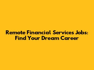 Remote Financial Services Jobs: Find Your Dream Career