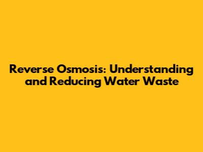 Reverse Osmosis: Understanding And Reducing Water Waste