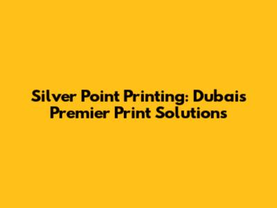 Silver Point Printing: Dubai's Premier Print Solutions