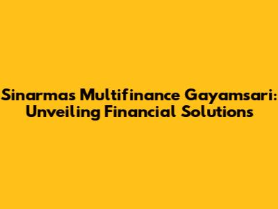 Hey there, finance enthusiasts! Ever heard of Sinarmas Multifinance Gayamsari? If you're scratching your head, no worries, we're diving deep into everything you need to know about this financial powerhouse. In this comprehensive guide, we'll explore what Sinarmas Multifinance Gayamsari is all about, the services they offer, and how they can potentially assist you with your financial needs. So, grab a cup of coffee, settle in, and let's unravel the world of Sinarmas Multifinance Gayamsari.