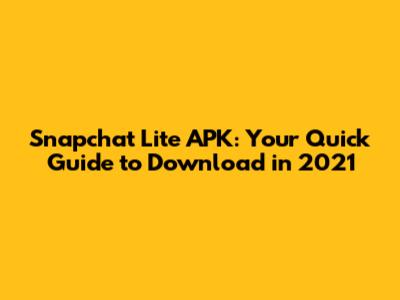 Snapchat Lite APK: Your Quick Guide