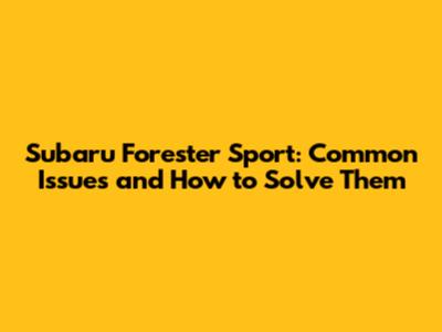 Subaru Forester Sport Problems & Solutions