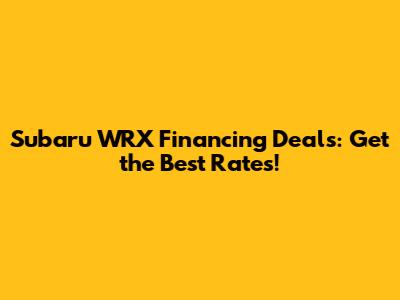 Subaru WRX Financing Deals: Get The Best Rates!