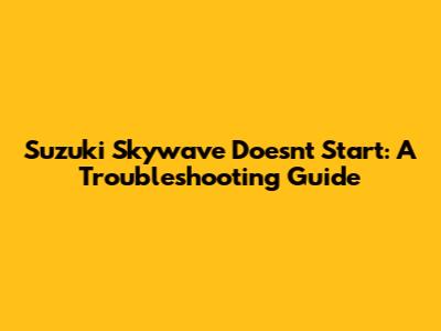 Suzuki Skywave Doesn't Start? Troubleshooting Tips