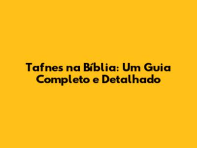 Tafnes Na Bíblia: Um Guia Completo E Detalhado