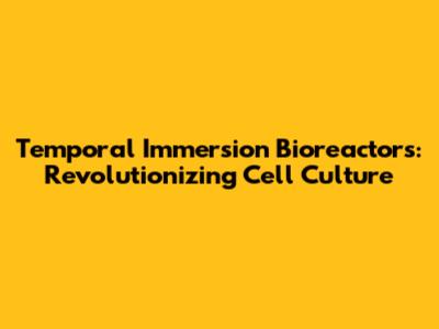 Temporal Immersion Bioreactors: Revolutionizing Cell Culture