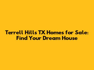 Terrell Hills TX Homes For Sale: Find Your Dream House