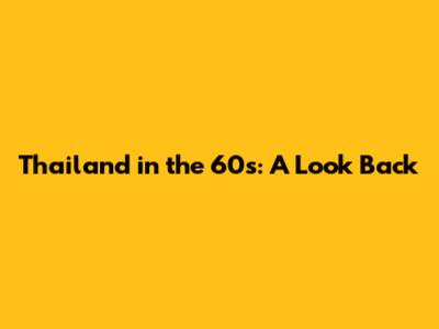 Thailand In The 60s: A Look Back