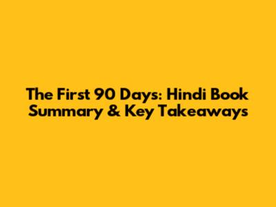 The First 90 Days: Hindi Book Summary & Key Takeaways