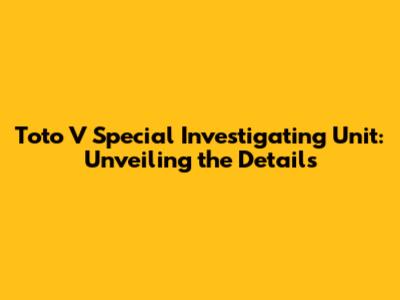 Toto V Special Investigating Unit: Unveiling The Details