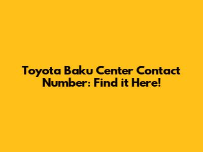 Toyota Baku Center Contact Number: Find It Here!