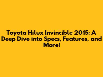 Toyota Hilux Invincible 2015: Specs, Features, And More!